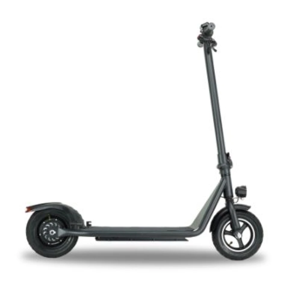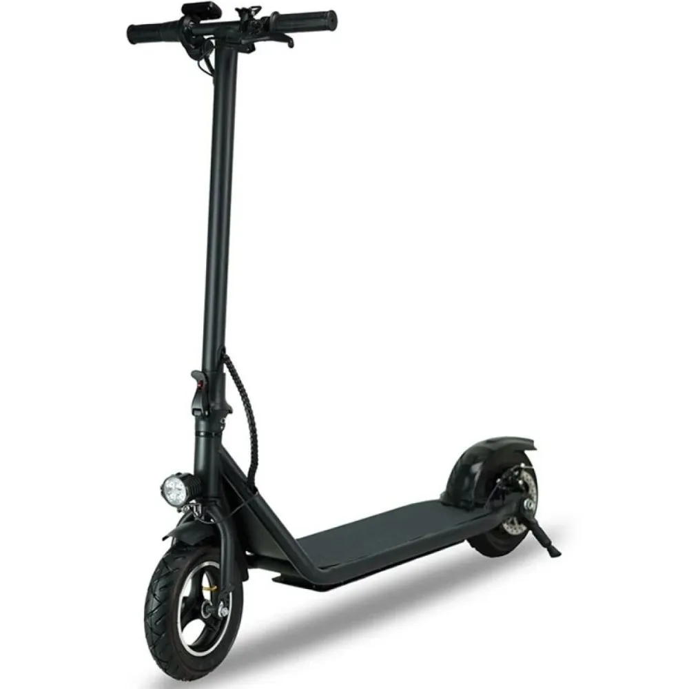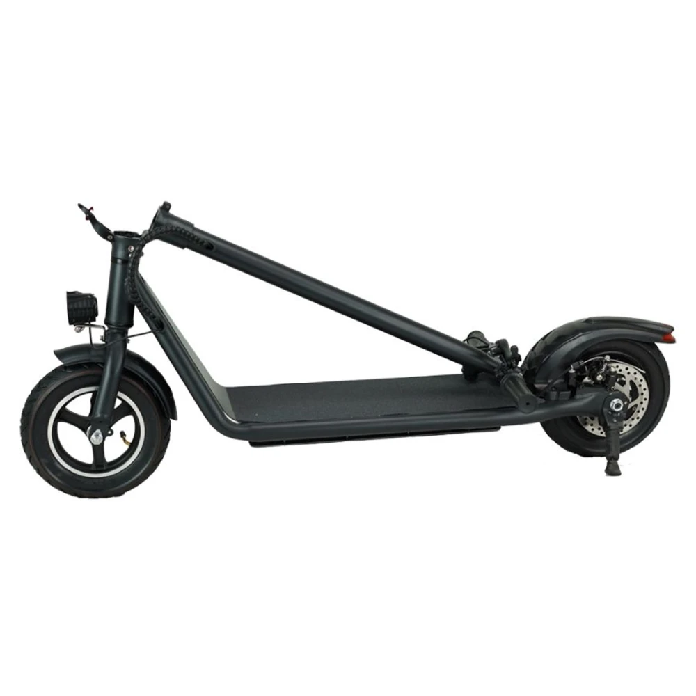 Заднеприводная модель оснащена мотор-колесом мощностными характеристиками на 480 Вт, способными развивать скорость до 25км/час и преодолевать аналогичное расстояние на одной подзарядке. Стильный классический дизайн подходит для женщин и мужчин, выделяется на фоне аналогичных электросамокатов. Емкая батарея на 6А*ч надежно защищена спецотсеком. Благодаря особой конструкции АКБ не боится пыли, грязи и другого негативного воздействия. Широкая нескользящая дека позволяет разместить 2 ноги одновременно, исключает случайное соскальзывание. 10-дюймовые долговечные колеса вместе с передним и задним освещением обещают активную накатистую езду в любой время суток и непогоду. Уверенность райдера и безопасность повышается за счет фирменного информационного дисплея.