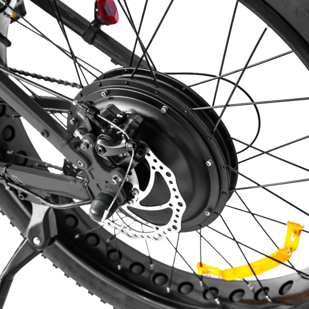 Удобная половинчатая ручка газа. Благодаря мощному электромотору и емкой 13 амперной батарее (48В А*ч) техника развивает скорость до 45 км/час и преодолевает на оной подзарядке до 75 км пути. Увеличить пробег можно за счет перехода на режим педалирования. Обустройство модели светодиодной фарой, информационным ЖК-дисплеем увеличивает степень безопасности ездока в ночное время и непогоду. Для покупки электрофэтбайка сейчас предлагаем связаться с менеджером интернет-магазина.