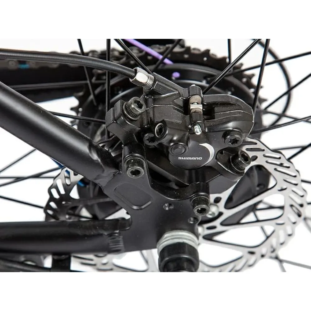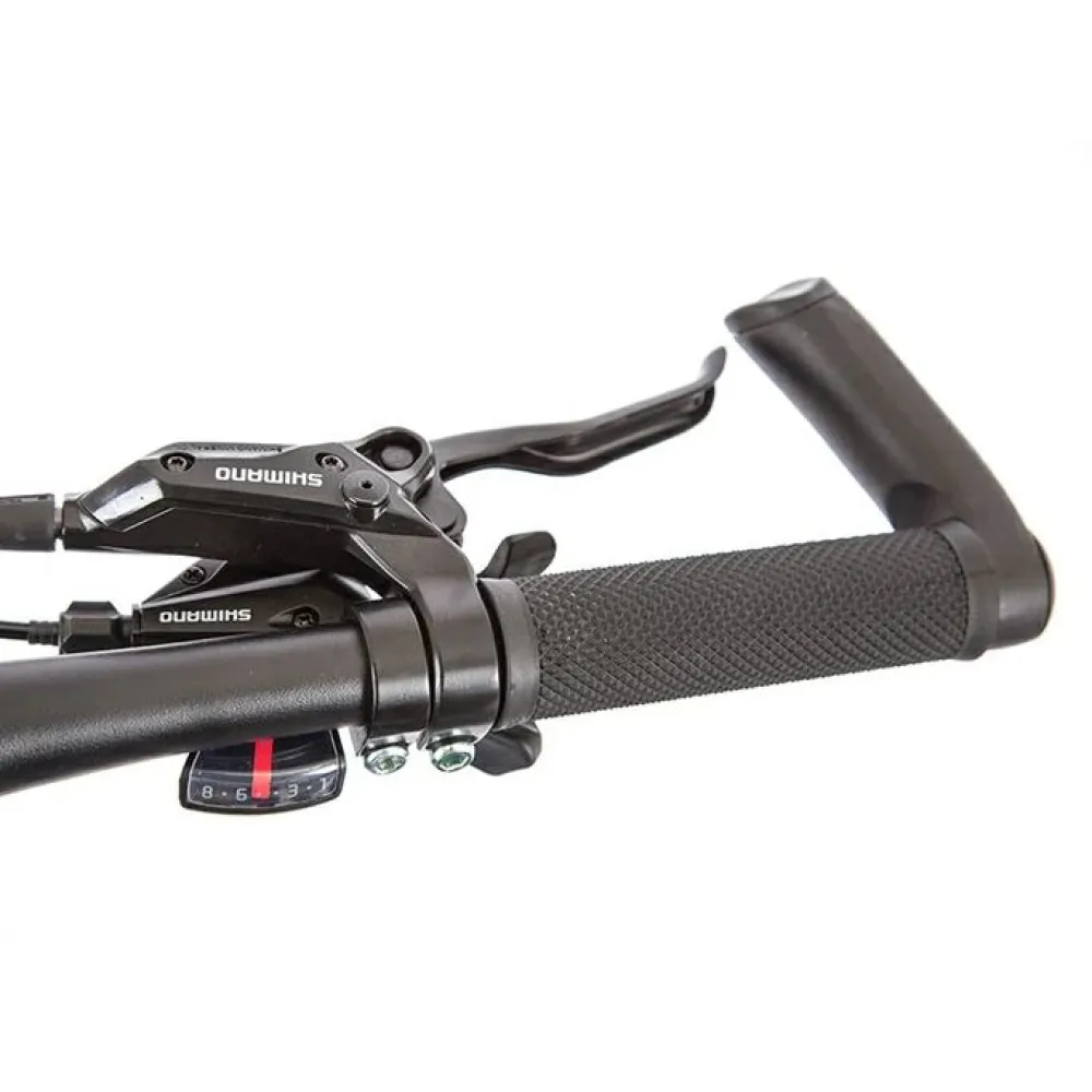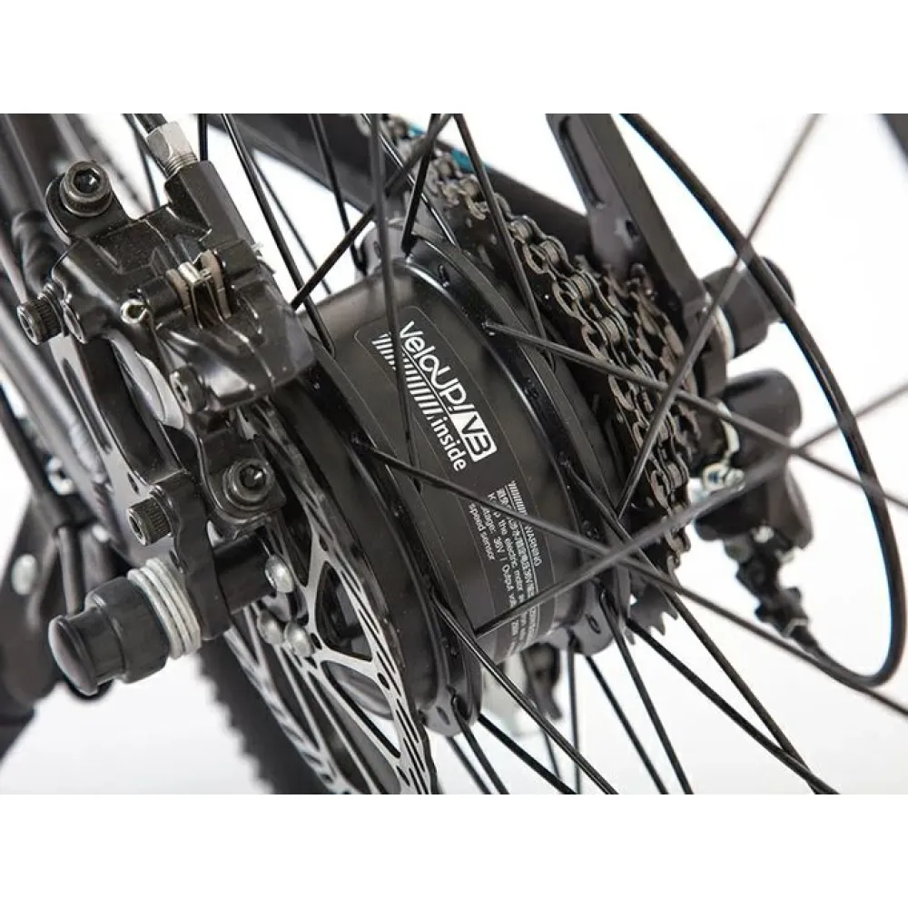 Техника оборудована электромотором 250 Вт с задним цепным типом привода для разгона до 35 км/час за короткое время. Дисковые гидравлические тормоза гарантируют мгновенную остановку в любой дорожной ситуации. Батарея расположена в боксе под рамой и быстро заряжается за 5 часов.