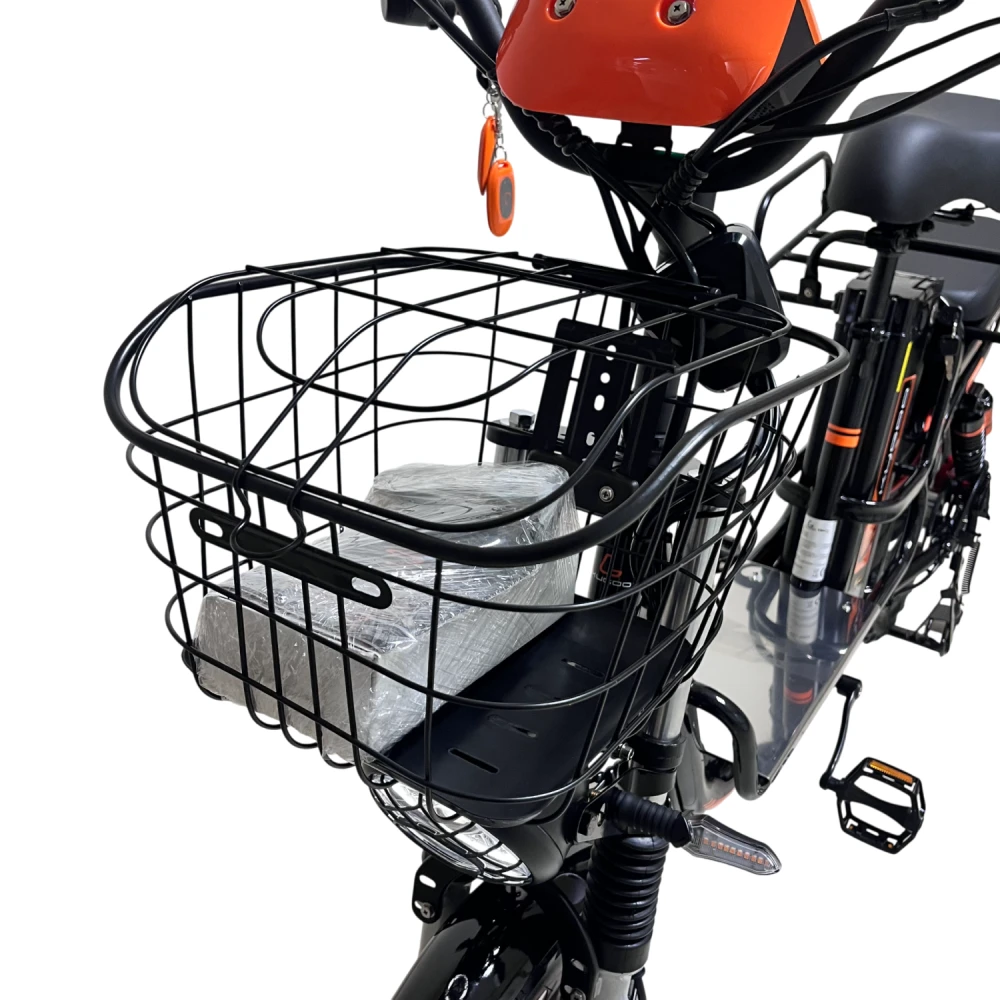 Багажник, корзина и подножка — удобно для перевозки вещей и повседневного использования.