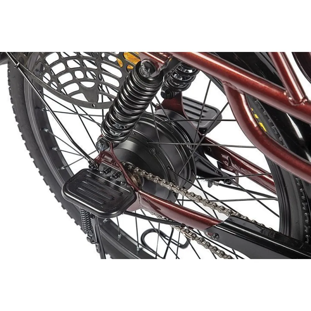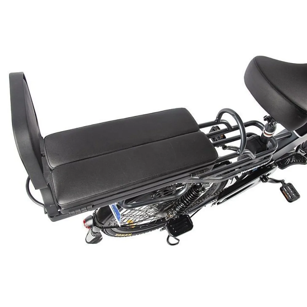 Технические характеристики электровелосипеда такие. Мощность двигателя составляет 500 Вт. Максимальная скорость – 30 км/час. На одной подзарядке пробег велогибрида составляет 50 км. Техника оснащена задними амортизаторами, имеет надежную тормозную систему. В сочетании компоненты обеспечивают комфортную безопасную для позвоночника езду. Мягкое сиденье электровелосипеда расслабляет, обеспечивает удобство передвижение. Техника оснащена корзиной, удобное для транспортировки груза. Как и друга аналогичная техника велогибрид имеет подножку для парковки, фару и крылья с брызговиками.