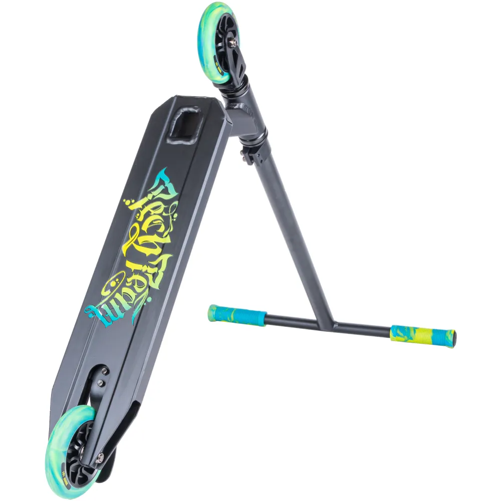 Колеса имеют диаметр 110 см, это идеально для трюкового самоката, баланс наката и маневренности. Подшипники среднего класса.